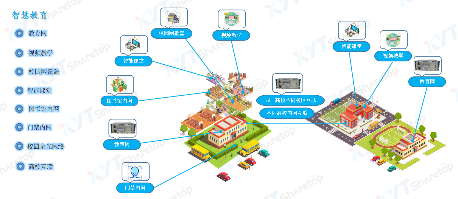 2. 支持高校大带宽高速互联,不同校区互联、不同高校互联;