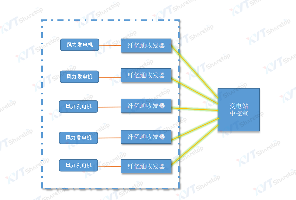 为了不断提升风力发电以及更好的管控风机,每个风机都会有一些监测数据和监控视频需要回传到变电站的中控室。由于风力发电厂的风机分散且分布范围较广,一般会采用光纤来传输风机收集的这些数据。