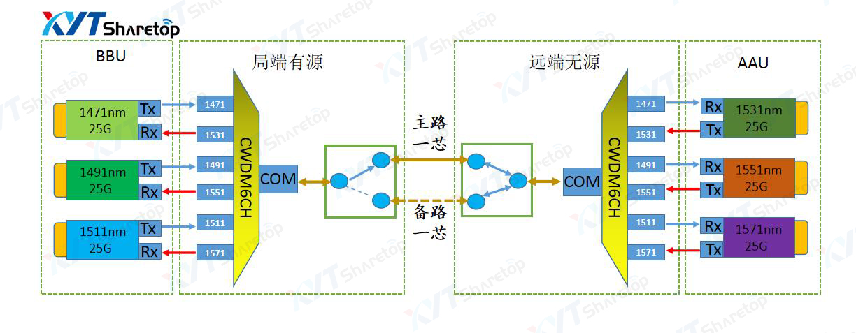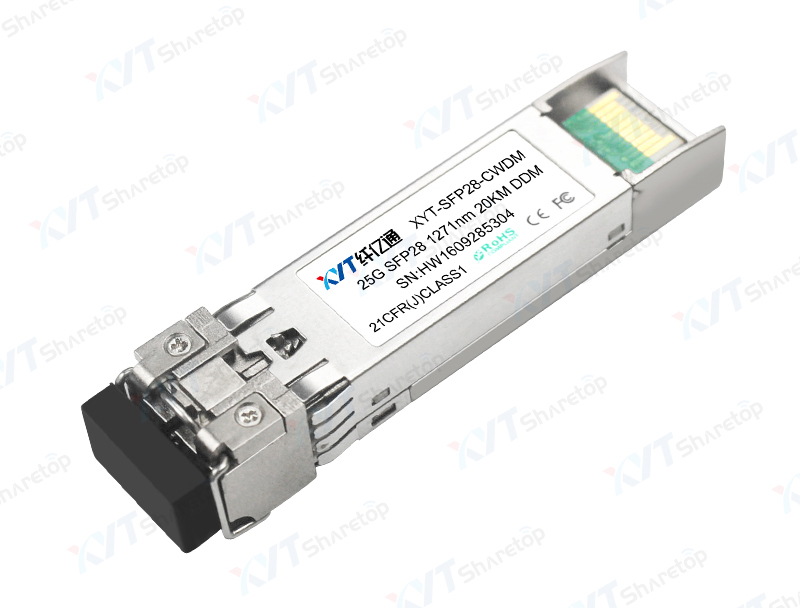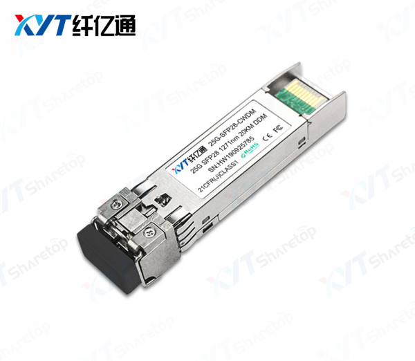 纤亿通基站前传光模块主要用于用于4G/5G基站建设当中,分别插在BBU和AAU(RRU)中,本款属于25G速率的彩光模块,需要配合波分设备一起使用。