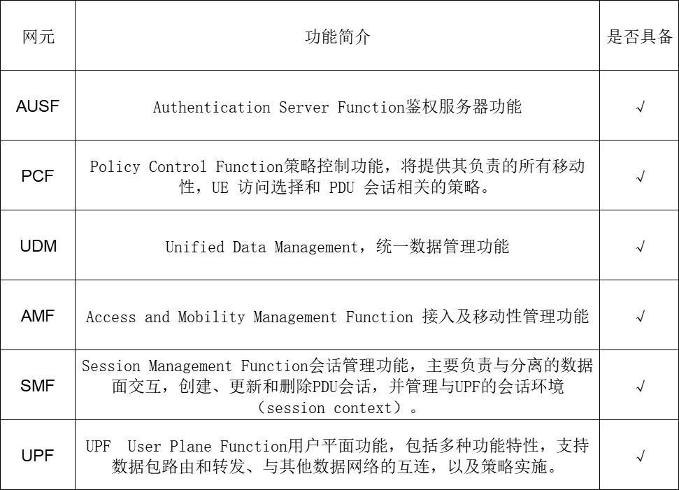 纤亿通5G SA独立组网5G核心网架构如下图: