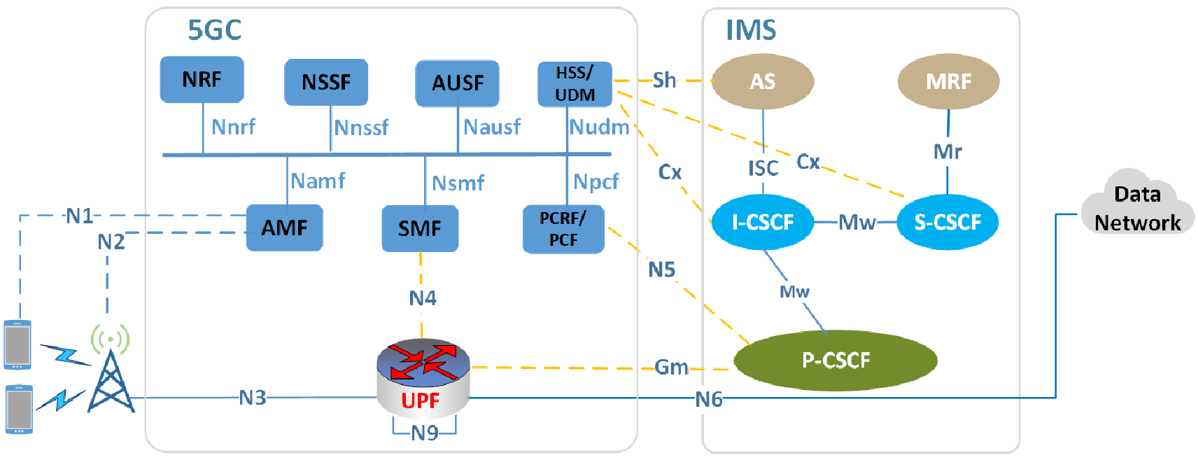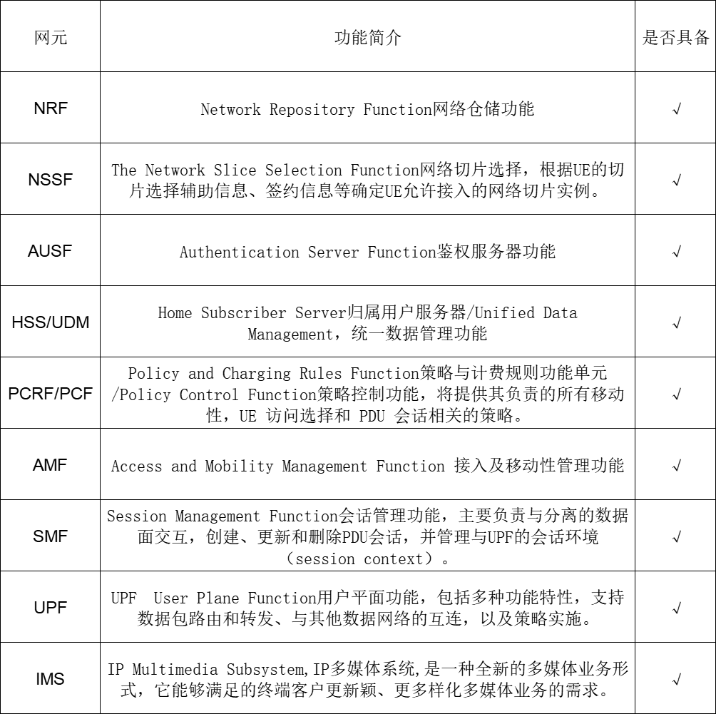 纤亿通5G SA独立组网5G核心网架构/IMS融合网如下图: