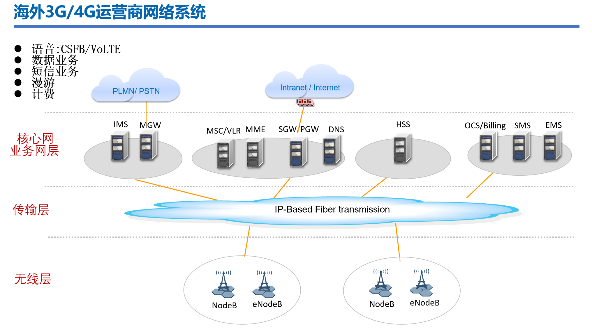 纤亿通科技团队从产品研发、项目方案设计到全球的高品质服务都可以提供。以下是纤亿通科技海外3G/4G运营商网络系统架构图: