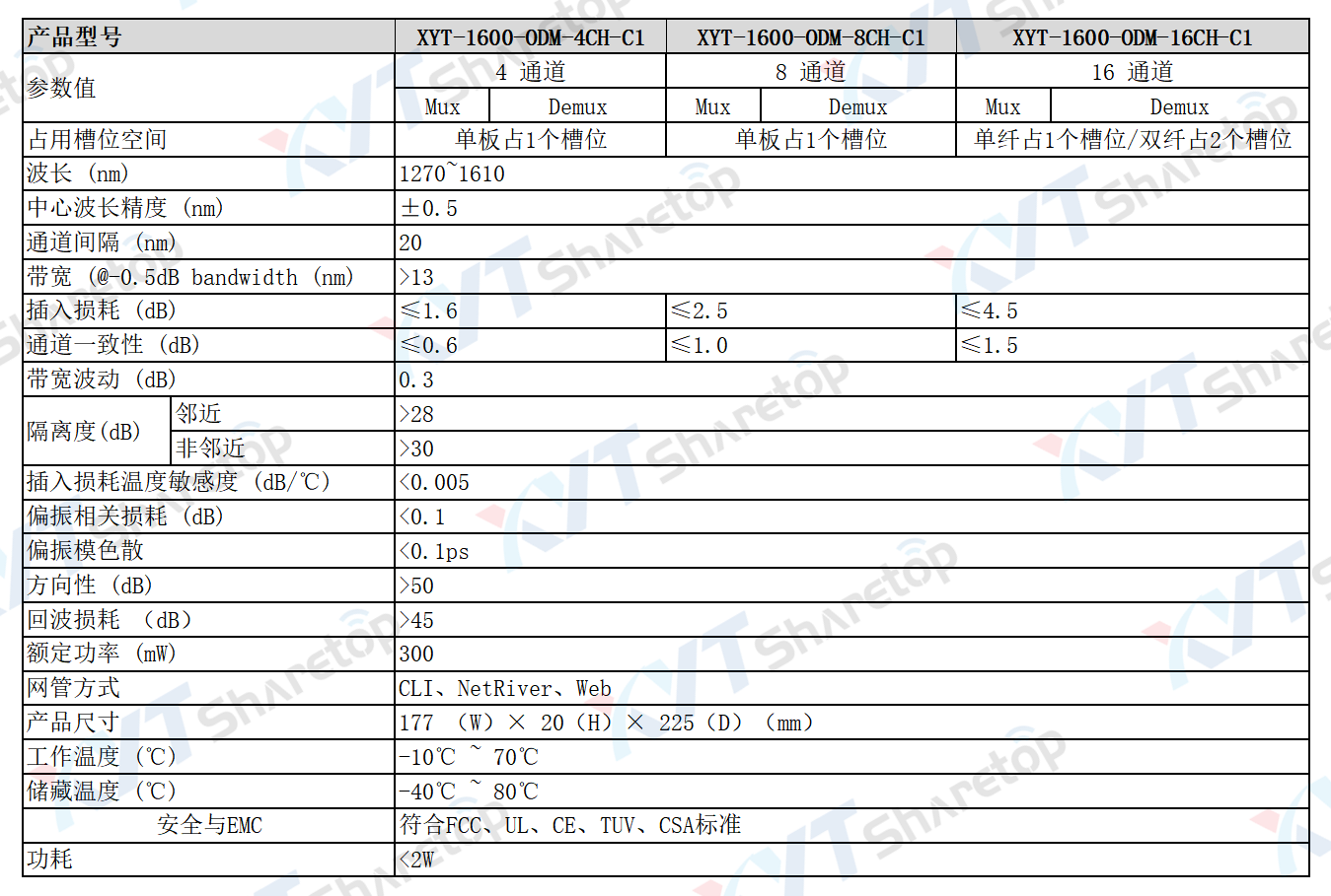 ODM(CWDM)板是纤亿通推出的粗波分复用/解复用板,信道间隔20nm,1270-1610nm共18个波长,可以将多个CWDM波长复用到一芯或两芯传输, 极大的节省客户的光纤资源,可根据客户需求灵活变更网络配置。广泛应用于城域网、政企专网、数据中心短距离传输。