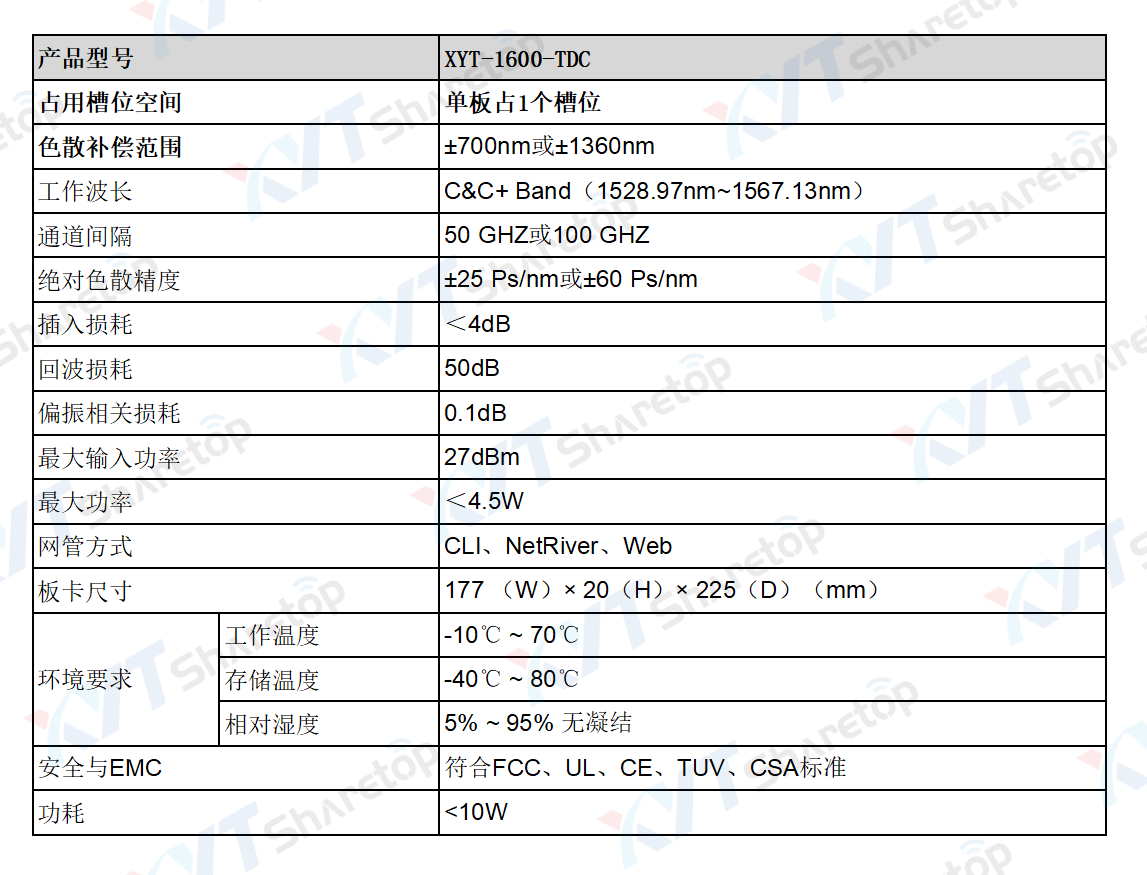 4. 支持DWDM系统色散补偿