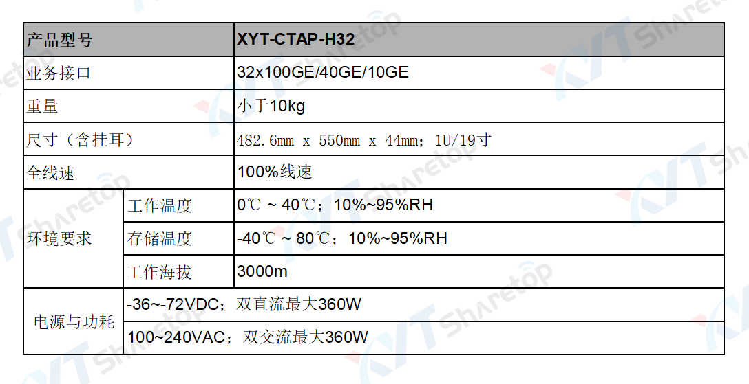 1.设备支持32路光以太网QSFP28/QSFP+接口,接口速率100GE/40GE/10GE可配置