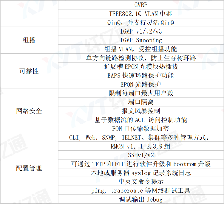 9.丰富的OAM功能,包括配置、告警、性能监控、故障隔离和安全管理等,同时支持CLI和GUI两种管理方式,易学易用