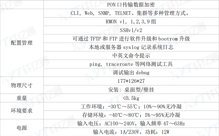 11.丰富的OAM功能设计,包括配置、告警、性能监控、故障隔离和安全管理等,既提供通过OLT进行的远程管理,又支持本地控制台管理