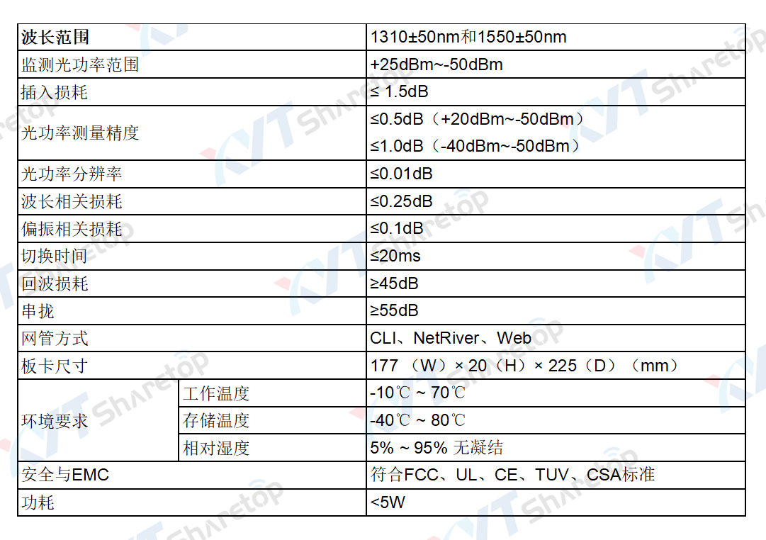5. 支持较宽的光功率监测范围:-50dBm~+25dBm