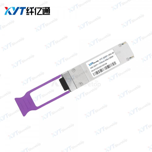 纤亿通科技推出的40G 符合QSFP MSA标准,采用高可靠度的激光器,传输距离有100m、300m、1.4km、2km、10km、30km、40km、80km,可热插拔、内置数字诊断功能,低功耗。本款为QSFP+1550-ZR4-80,双工LC接口,需要2芯单模光纤才能实现收发。对于短距离,例如10公里以内,不需要 EDFA 和色散补偿模块 (DCM)。 但对于相对较长的距离,需要 EDFA 和 DCM 来补偿光纤链路损耗和光纤色散,产品特性如下: