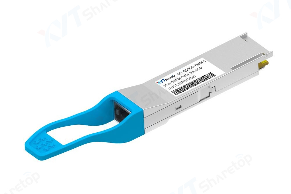 纤亿通科技推出的100G QSFP28 PSM4 模块采用4路25G NRZ单模并行技术,接口为单模MPO/MPT,至少占用8芯单模光纤,广泛应用于100G PSM4以太网和InfiniBand 4x EDR链路,通过单模光纤传输距离最高可达2km或10km,出于光缆成本考虑,常用的型号为2km。