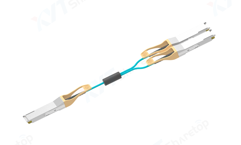 有源光缆AOC常见速率有10G、25G、40G、100G、200G、400G等。本款为XYT-200G-QSFP56-2x 100G-QSFP56-AOC,用于数据中心200G转2路100G以太网分支链路,通过多模光纤(MMF)可以实现距离高达70m(OM3)或100m(OM4/OM5)的互连。产品特性如下: