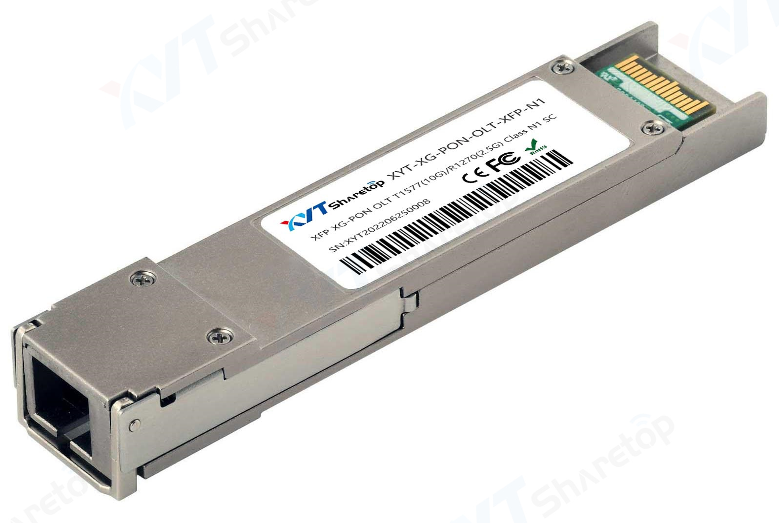 在XGPON传输中,常见的PON模块有XFP XG-PON OLT、SFP+ XG-PON OLT、SFP+ XG-PON ONU、SFP+ XGPON Combo OLT。其中,XFP XG-PON OLT、SFP+ XG-PON OLT、SFP+ XGPON Combo OLT模块主要是用在OLT上面的PON光口;SFP+ XG-PON ONU模块主要是用在ONU设备的光口或者PON中继设备的上联口。