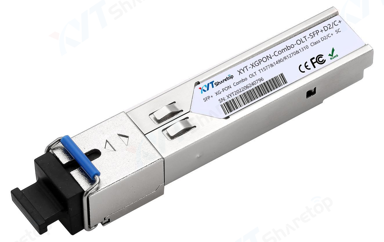在XGPON传输中,常见的PON模块有XFP XG-PON OLT、SFP+ XG-PON OLT、SFP+ XG-PON ONU、SFP+ XGPON Combo OLT。其中,XFP XG-PON OLT、SFP+ XG-PON OLT、SFP+ XGPON Combo OLT模块主要是用在OLT上面的PON光口;SFP+ XG-PON ONU模块主要是用在ONU设备的光口或者PON中继设备的上联口。