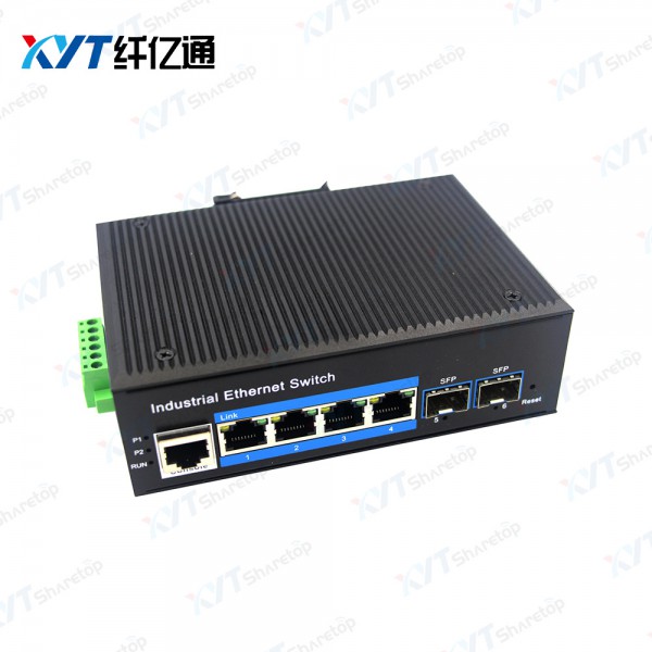 本款型号为XYT-S2000-4T2G,包含2个千兆SFP光口,4个千兆RJ45口,1个Console口。