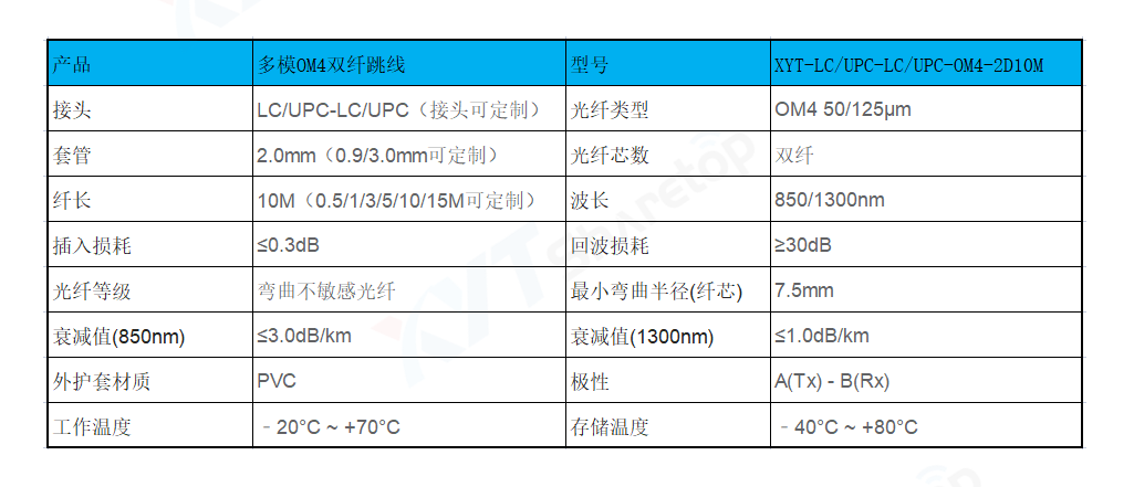 产品编号:XYT-LC/UPC-LC/UPC-OM4-2D10M