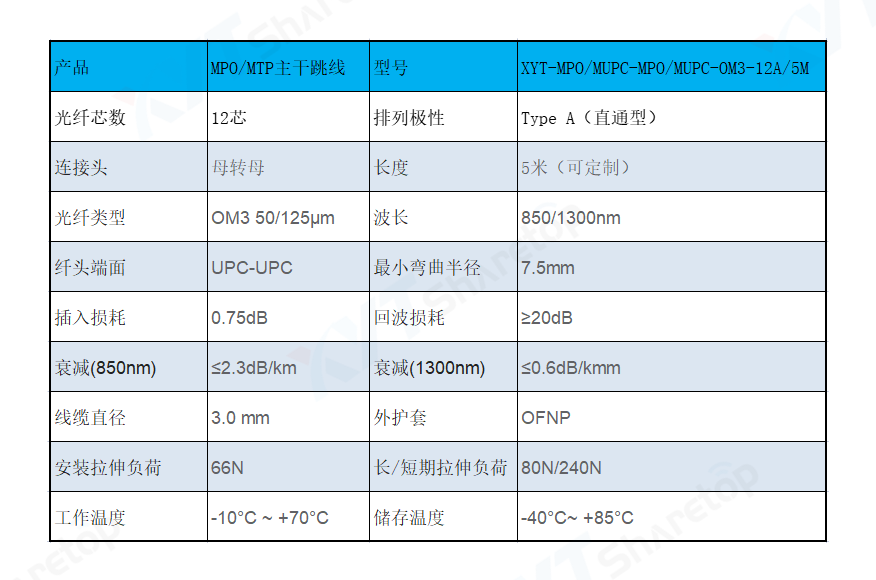 MPO/MTP光纤跳线是由MPO连接器和光纤光缆组合而成。MPO连接器类型根据IEC 61754-7规定有几个因素来区分: 芯数(光纤阵列数 Array Number),公母头(Male-Female),极性(Key),抛光类型(PC 或 APC)。