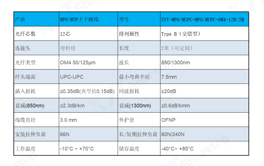 产品编号:XYT-MPO/MUPC-MPO/MUPC-OM4-12B/2M