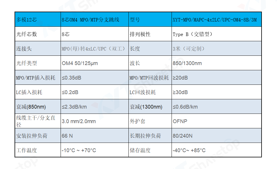 产品编号:XYT-MPO/MAPC-4x2LC/UPC-OM4-8B/3M