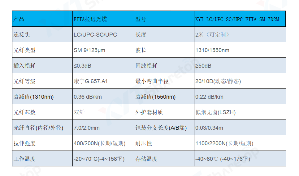 产品编号:XYT-LC/UPC-SC/UPC-FTTA-SM-7D2M