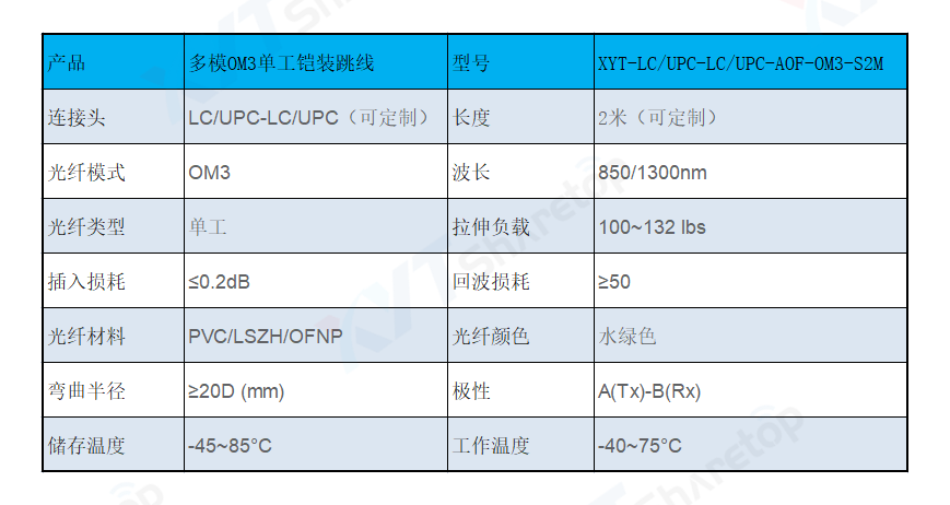 产品编号:XYT-LC/UPC-LC/UPC-AOF-OM3-S2M