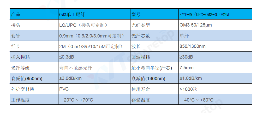 产品编号:XYT-SC/UPC-OM3-0.9S2M