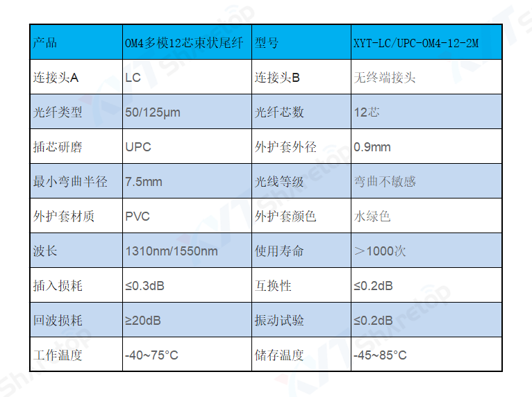 产品编号:XYT-LC/UPC-OM4-12-2M
