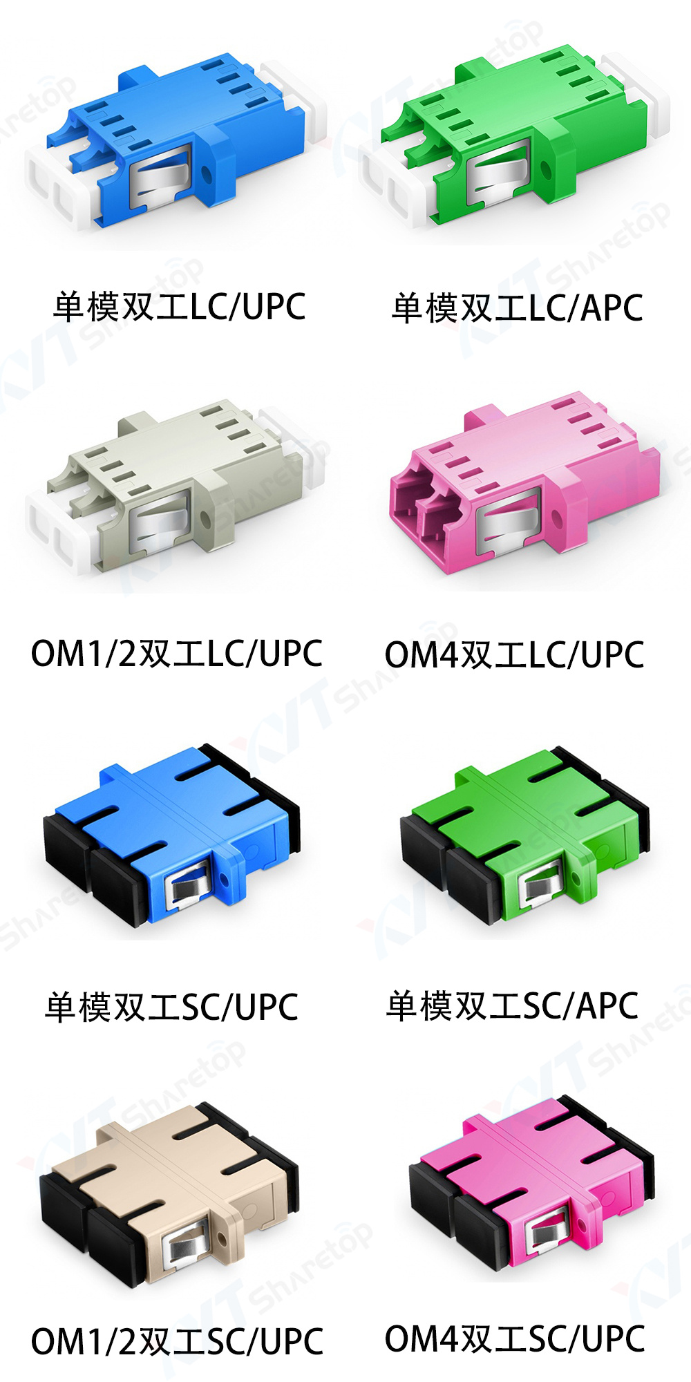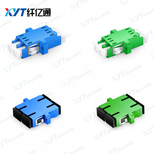 两个光纤连接头为不同类型的,一般称呼为转接适配器,常见的有母转公、母转母转接适配器。