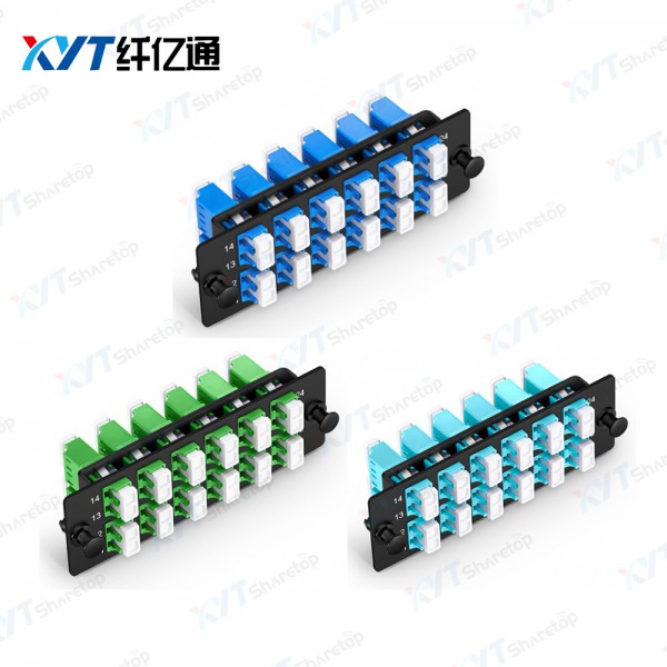 光纤适配器面板,包含多种不同面板、不同接头的适配器,也可以根据实际应用做成单工或者双工,面板上包含的适配器数量取决于面板的尺寸大小。
