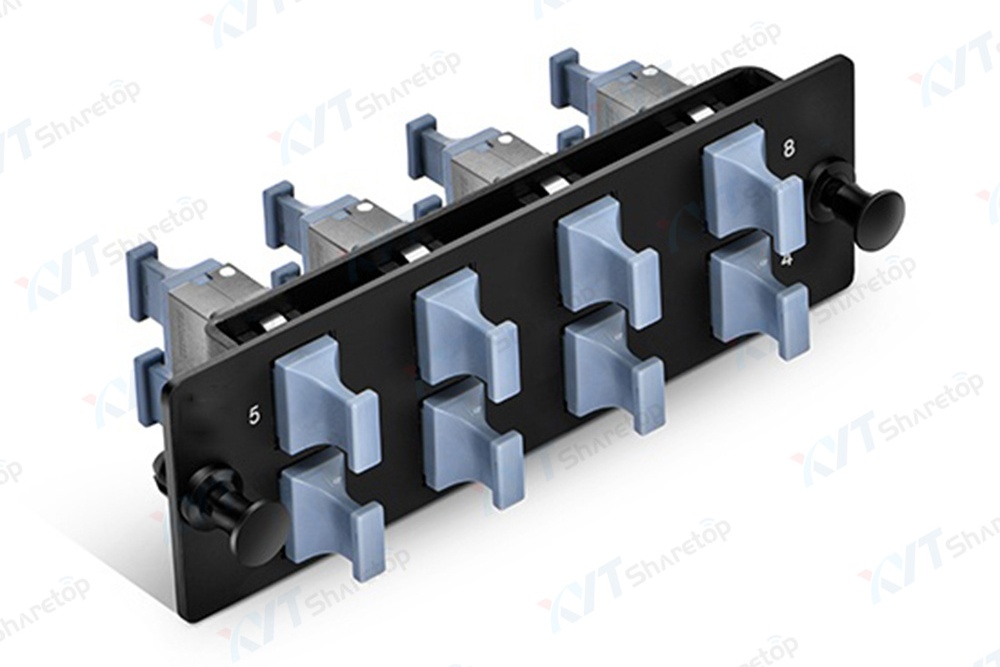 光纤适配器面板,包含多种不同面板、不同接头的适配器,也可以根据实际应用做成单工或者双工,面板上包含的适配器数量取决于面板的尺寸大小。