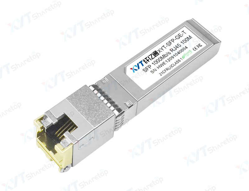 深圳纤亿通科技有限公司生产的SFP是小型可热插拔的光模块,可以简单的理解为GBIC的升级版本。SFP模块体积比GBIC模块减少一半,只有大拇指大小。可以在相同的面板配置出多一倍以上的端口数量。使用SFP电口模块可以在设备网口不足时使用,即通过使用SFP电口模块把SFP光口转换成RJ45电口。