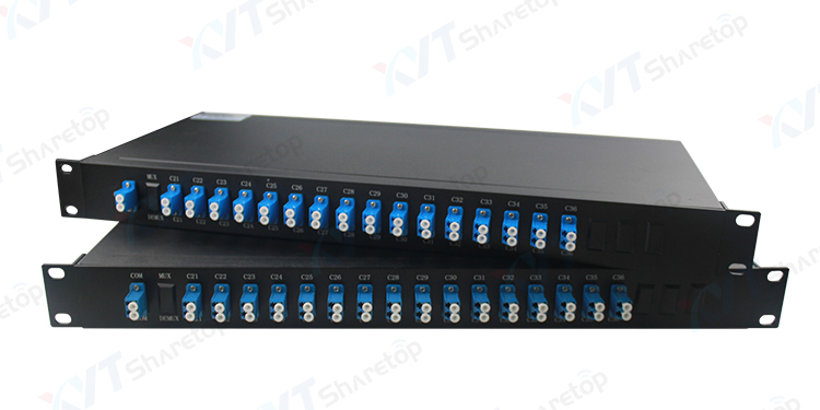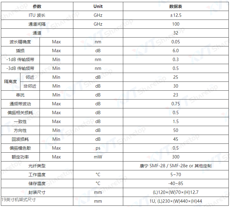纤亿通100G信道间隔密集光波分复用器/解复用器采用成熟的多腔介质膜实现光的滤波,波长稳定性好,采用密封工艺封装,环境稳定性高.