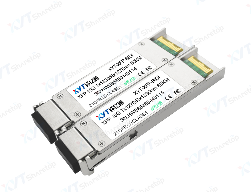 深圳纤亿通科技有限公司生产的XFP万兆光纤模块是一种可热插拔的、占电路板面积很小的、串行一串行光纤收发器,可以支持SONET OC-192、10 Gbps 以太网、10 Gbps光纤通道和G.709链路。XFP是串行10G光收发模块的一种标准化封装。