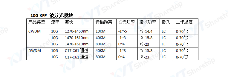 深圳纤亿通科技有限公司生产的XFP万兆光纤模块是一种可热插拔的、占电路板面积很小的、串行一串行光纤收发器,可以支持SONET OC-192、10 Gbps 以太网、10 Gbps光纤通道和G.709链路。XFP是串行10G光收发模块的一种标准化封装。