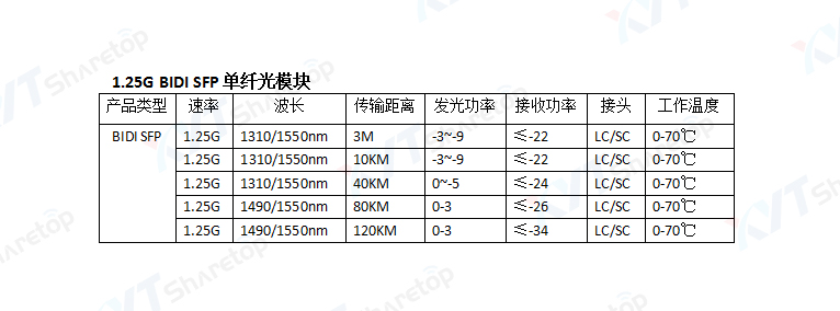 产品编号:XYT-2.5G-SFP-T49/T55-120
