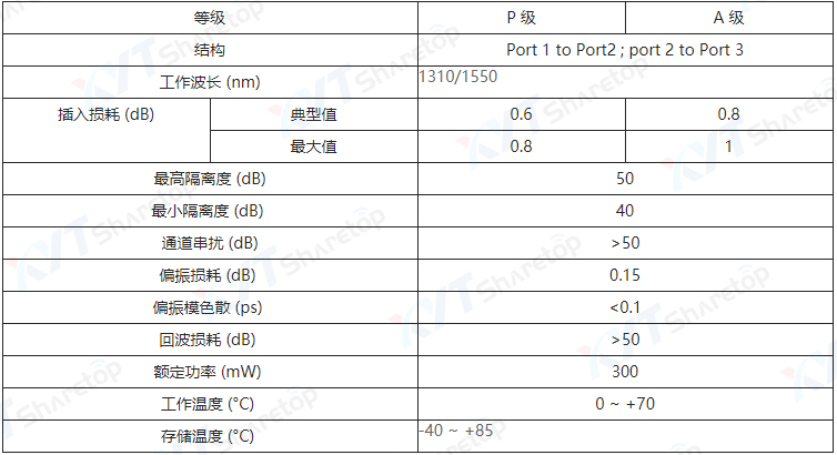 注:在常温条件下,不包括连接器,熔接器及端面损耗