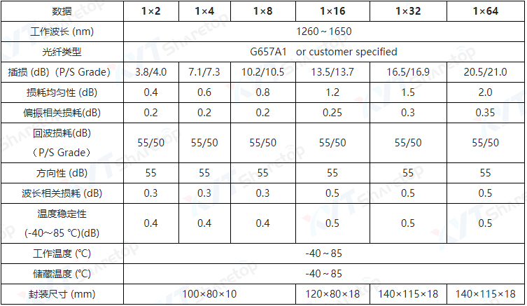1. 所有参数信息不包含接头,熔接器及端面的损耗。