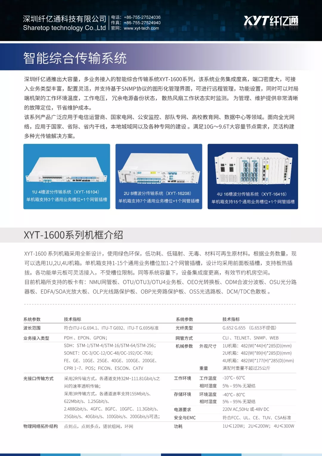 智能综合传输系统 产品经典组网应用 纤亿通产品主要应用于