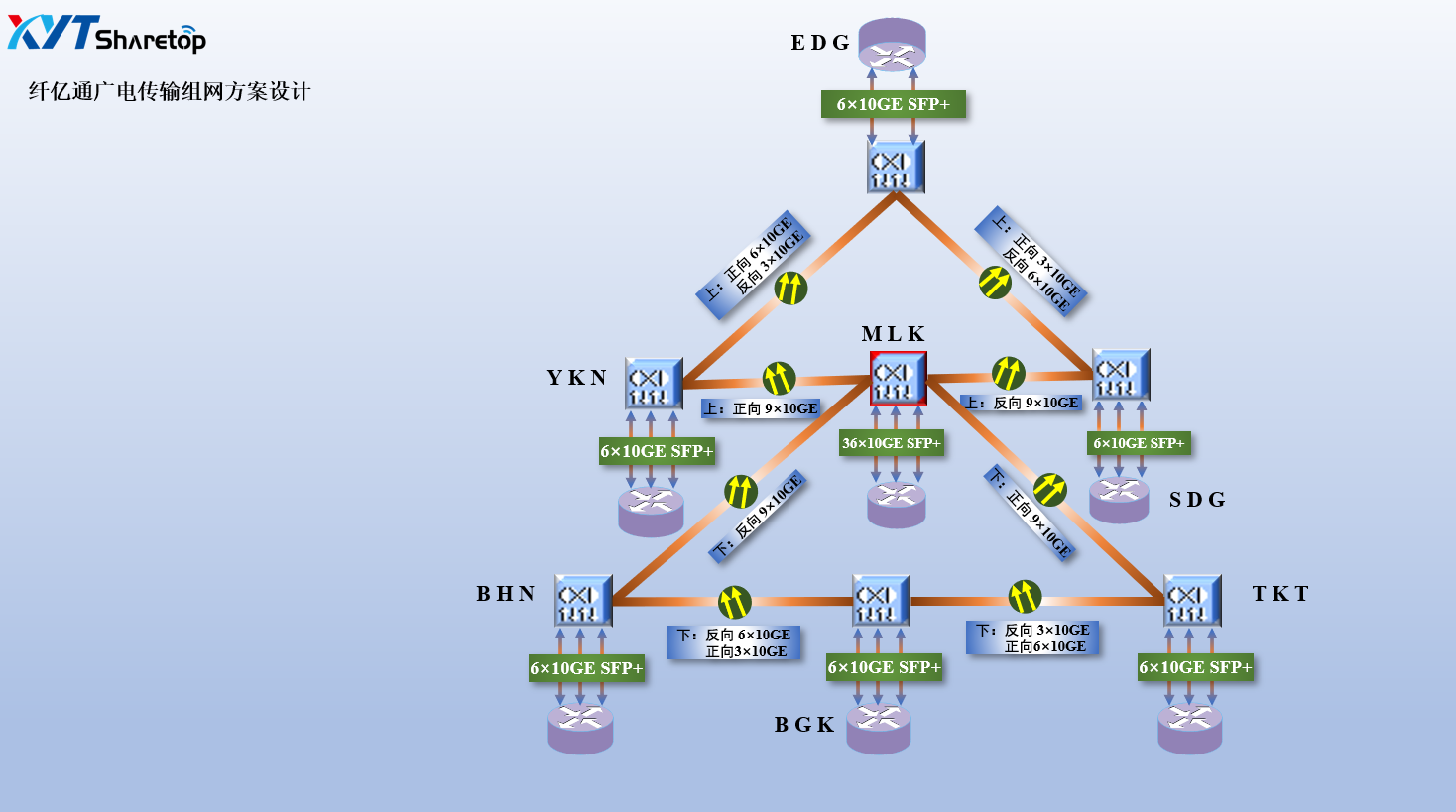 2013年,国家电网某省下属市县信息内网升级改造。 (1)数据中心(IDC)传输 常见的传输类型有两种,点对点传输和环网传输,主要目的是实现