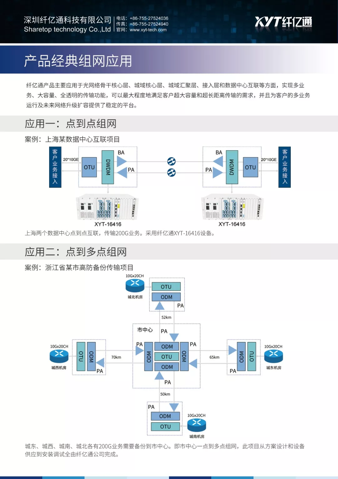 Sharetop OTN networking mode XYT-OTN2800 can be flexibly configured as OTM(