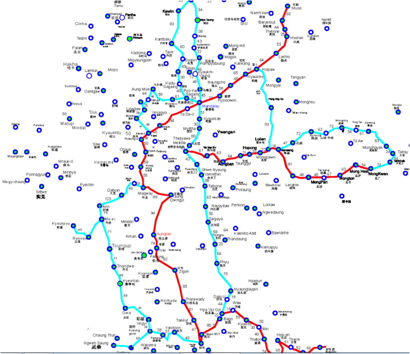 客户需求:Mandalay是业务汇聚中心。骨干网从缅甸北部Muse往南经Lashio至主站点Mandalay。Mandalay到缅甸南部最大城市Yangon以环网方式组网。中间经过Meiktila、Napyitaw、Taunggyi、Naung-u、Magwe等重要城市,线路全长共2800多公里,共22个业务节点,每个点独享40G业务。