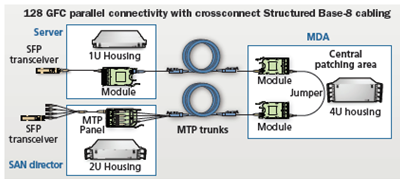 最初,128 GFC期望部署在交换机内部链路(ISL),并用MTP连接整个链接。与传统光纤通道用双工串行连接相比,并行传输将使用8芯 MTP连接器和适配器面板来代替MTP 转 LC互联。