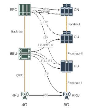CU的存在实现了原有BBU的部分功能集中,即兼容了完全的集中化部署,也支持分布式的DU部署。