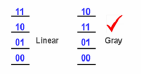 为尽量避免必然出现的误码影响连续两比特,PAM-4编码一般采用Gary码形式,如下图所示1-2。