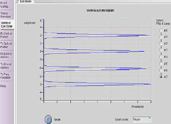 通过上述的测试,可以比较轻松地重复激发/复现设计问题及系统余量(margin),在此测试开始前,可以通过仪表的8通道的50G PAM-4的眼图幅度直方图来实时定性检查DUT配置与物理连接是否正确,是否有正确的PAM-4信号被接收,如下图3-3所示: