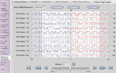 码型滑码也是一个非常重要和经常发生的困扰开发者的问题,但如何清晰区分开问题是由于突发误码还是由于码型滑码造成的原因非常困难,ONT的高级误码分析功能可直观指示和归类问题发生是由于码型滑码造成的(一般是由于CDR问题造成),如下图3-6所示。