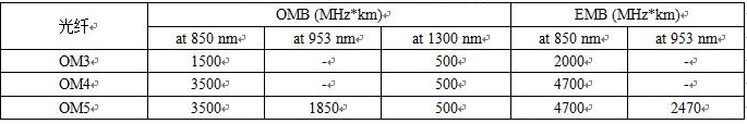SWDM MSA小组发布的标准相对于TIA针对多模光纤的标准略有不同,40G SWDM4的有效模式带宽要求: