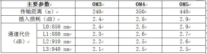 40G短波(850~940nm)波分复用多源协议中链路指标为: