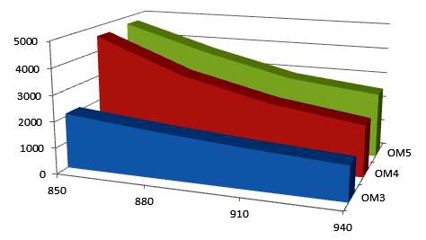 图5 OM5标准(TIA)和OM4、OM5光纤的有效模式带宽
