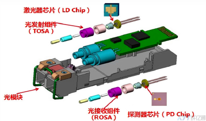 光模块内部的激光器可分为垂直腔面发射激光器(VCSEL)、法布里-珀罗激光器(FP)、分布式反馈激光器(DFB)、电吸收调制激光器(EML)等;光探测器可分为PIN结二极管(PIN)、雪崩光电二极管(APD)等。不同类型的激光器和光探测器在性能和成本等方面存在差异,光模块可根据具体规格要求选择不同的芯片方案。