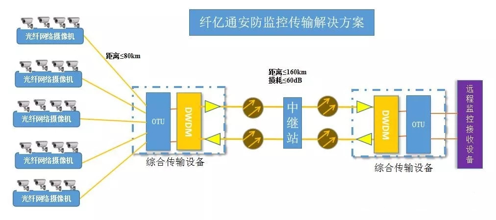 ①实现超长距离传输,单跨度100公里以上,通过中继再生放大,可实现1000公里以上传输。